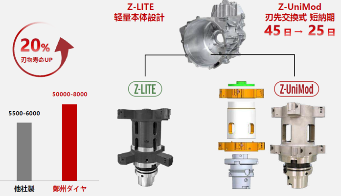 軽重量、穴径大、深穴加工、複雑なステップ穴
